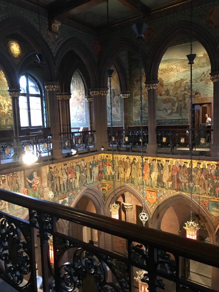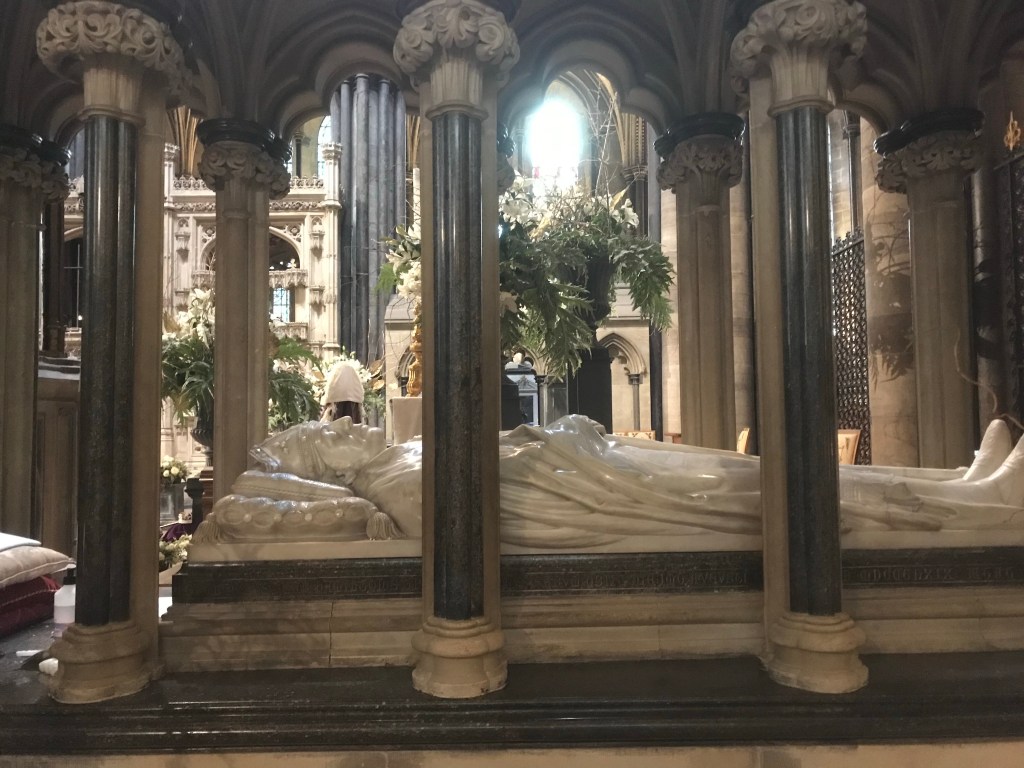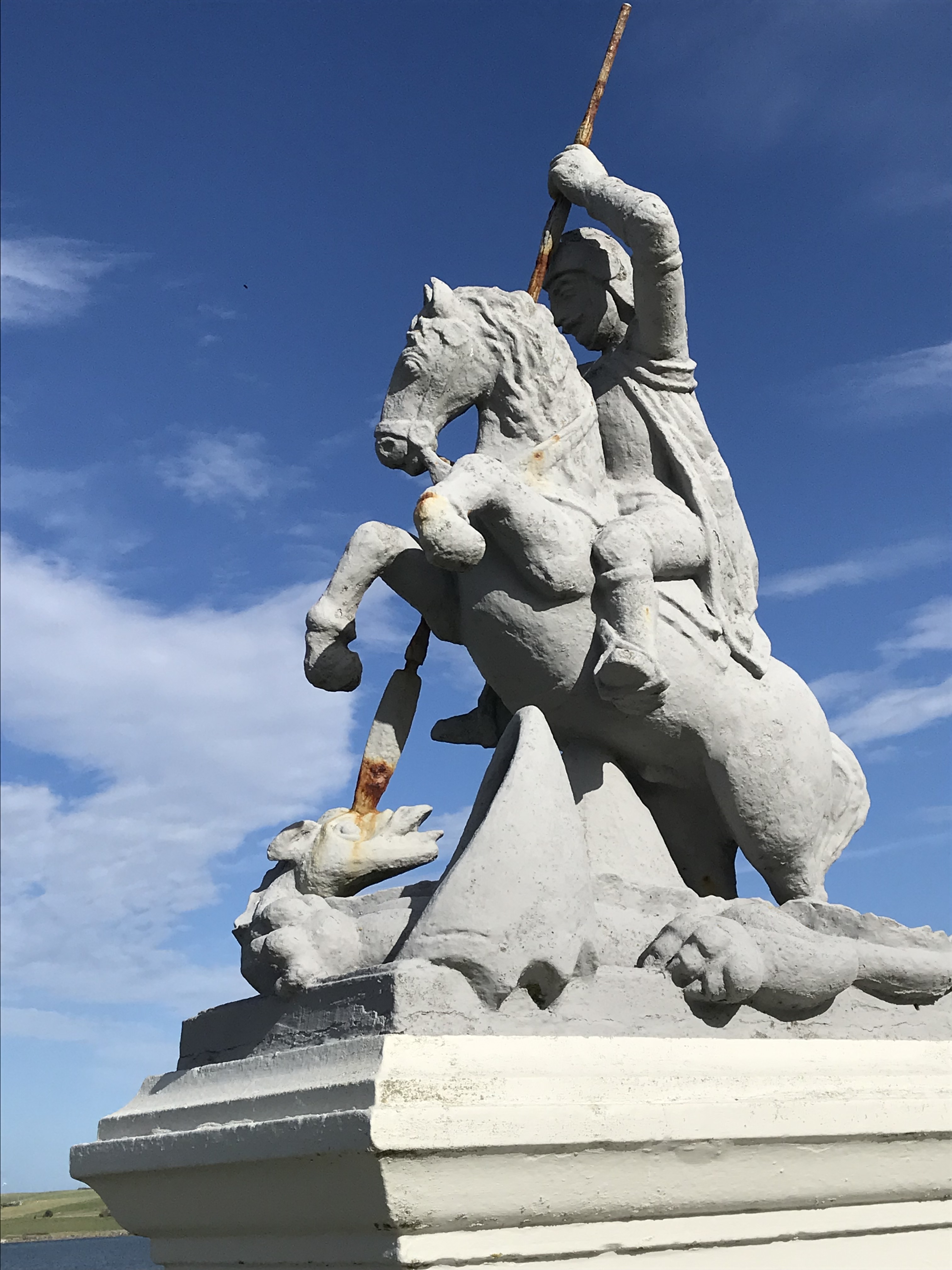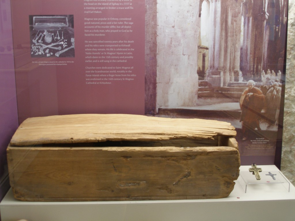 Next day the minibus dropped us off to hike through showers to Wideford Hill Chambered Cairn with its Neolithic scratchings carved into the rock face, and to then descend into the town of Kirkwall itself to explore the absorbing displays of the Orkney Museum set in Tankerness House and gardens. The St Magnus’ Visitor Centre’s informative video installation filled in all the gaps in the story of St Magnus’ life and I was thrilled to finally locate the remains of the saint himself interred in a pillar in a modest spot in the tranquil Cathedral.