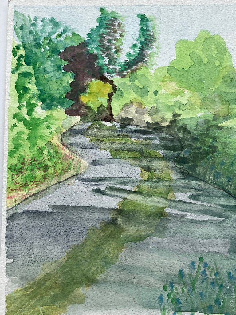 In addition to the obvious pleasure of the better weather, my day was made when during free time for lunch, I happened upon the Workshop and Loft Gallery, located near the picturesque harbor front of the town of St Margaret’s Hope. Inside were baskets of local Orcadian wool vegetable dyed in subtle blues, greens, rose and ochres. I purchased five large skeins of hand-spun wool from a flock on the Isle of Auskerry, farmed, shepherded, sheered and spun by a single mother raising five sons: an Orcadian resilient.