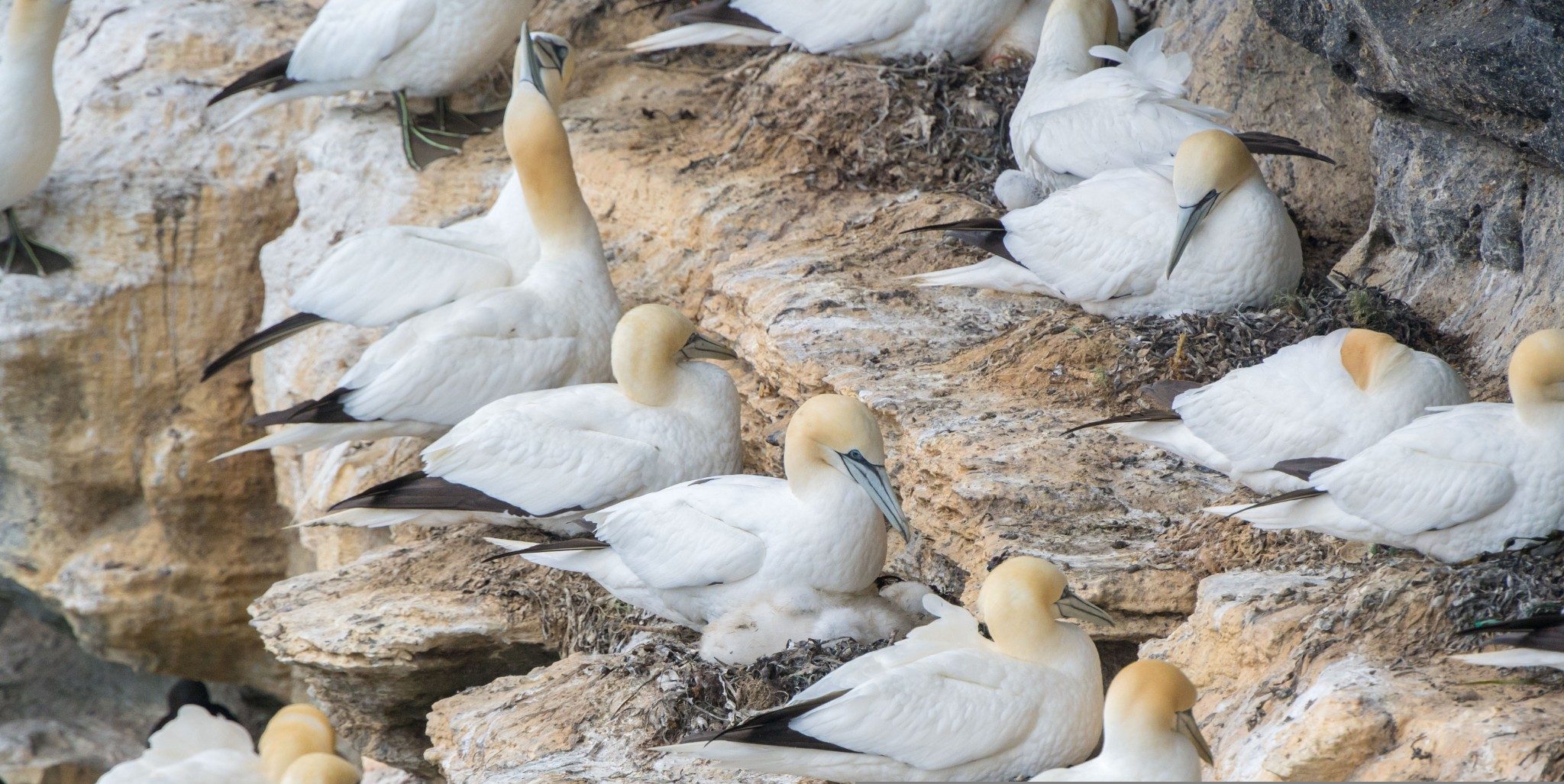 Sunshine continued for our last day’s final short hike along Mull Head through the nature reserve to photograph the Gloup (a naturally-formed sea spout and blow hole) and the climb up onto the Brough of Deerness with its steps cut into the rock at its summit. Several sightings of mountain hares made a last afternoon’s hike perfect!