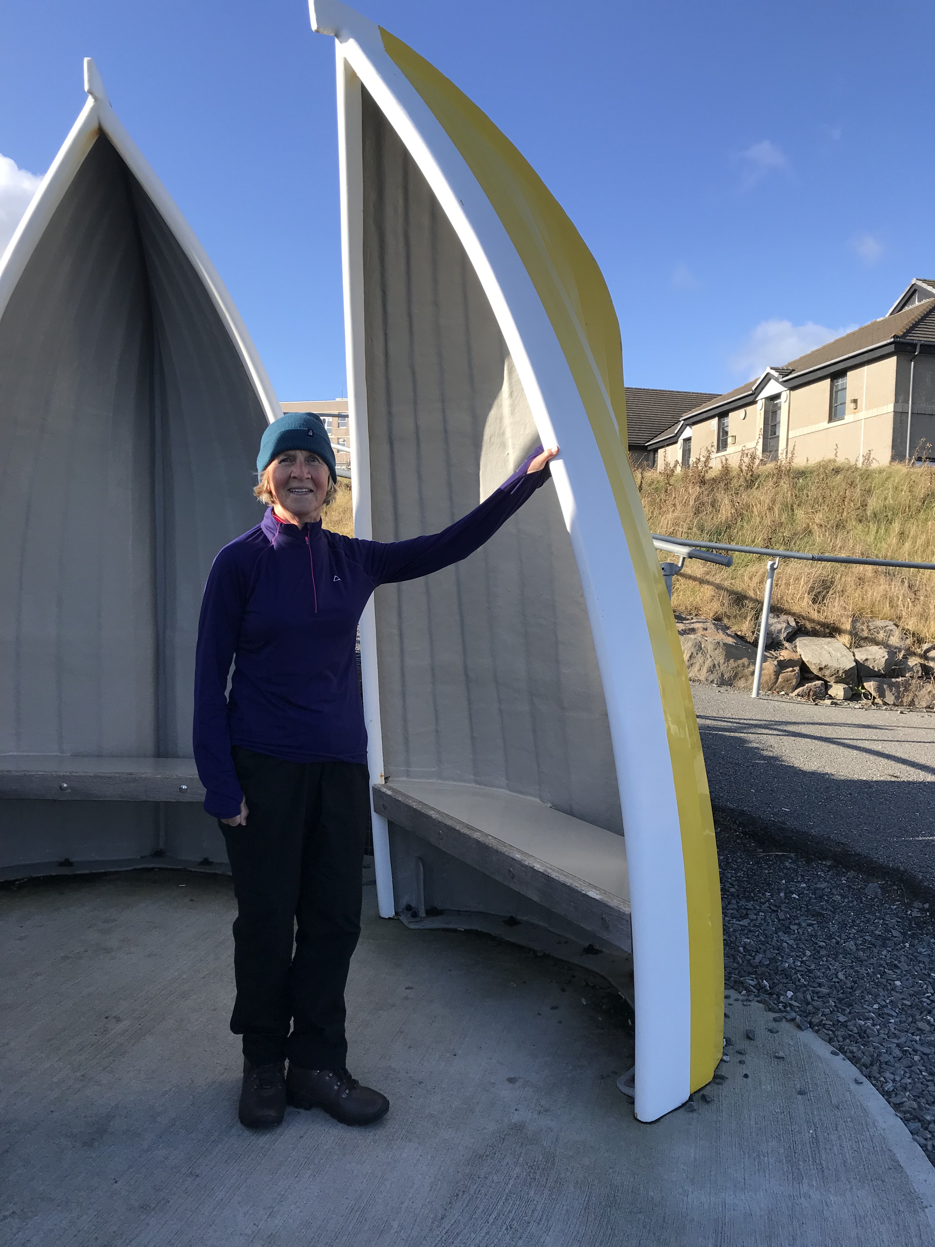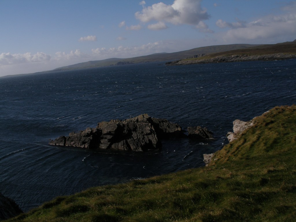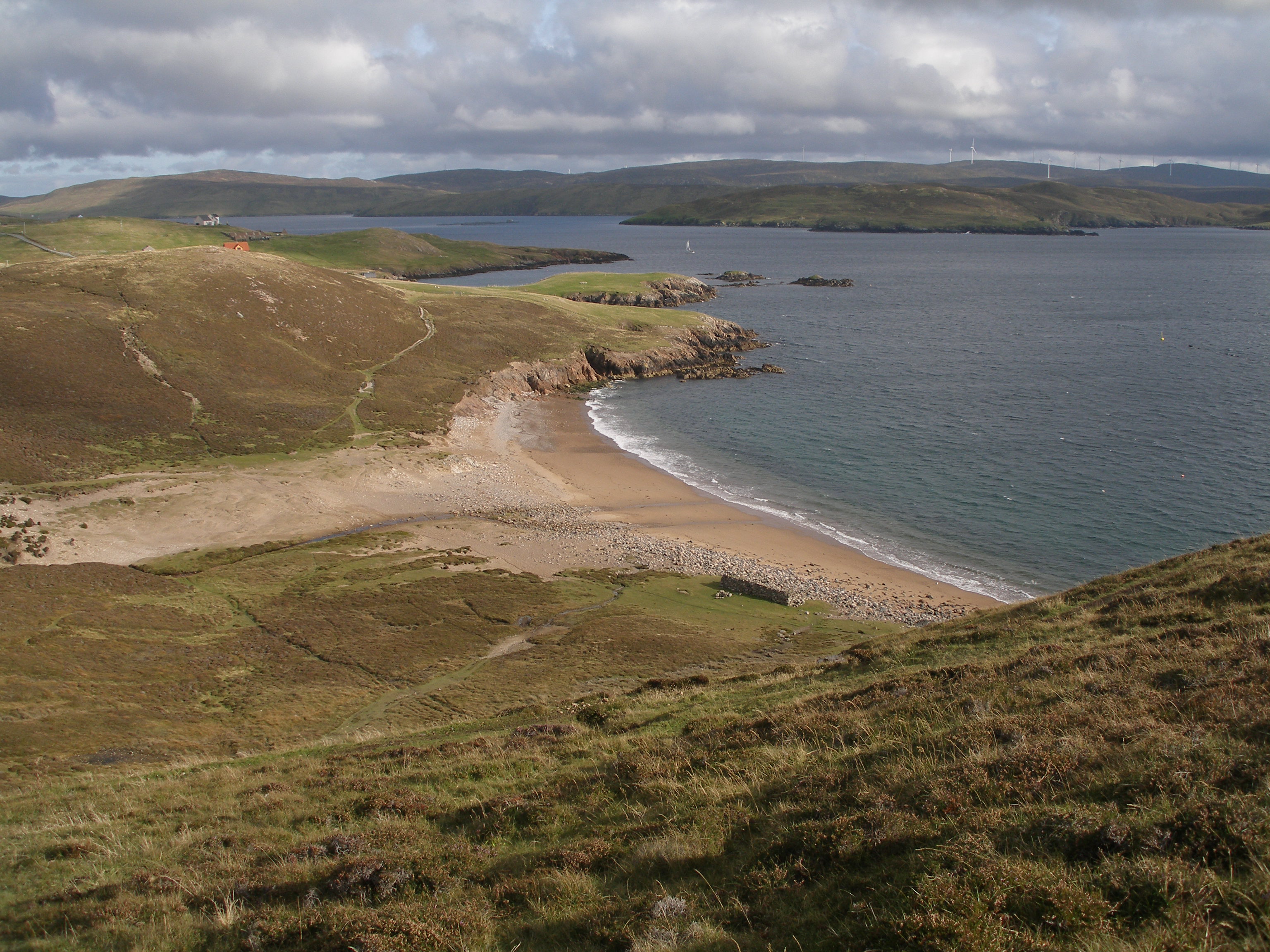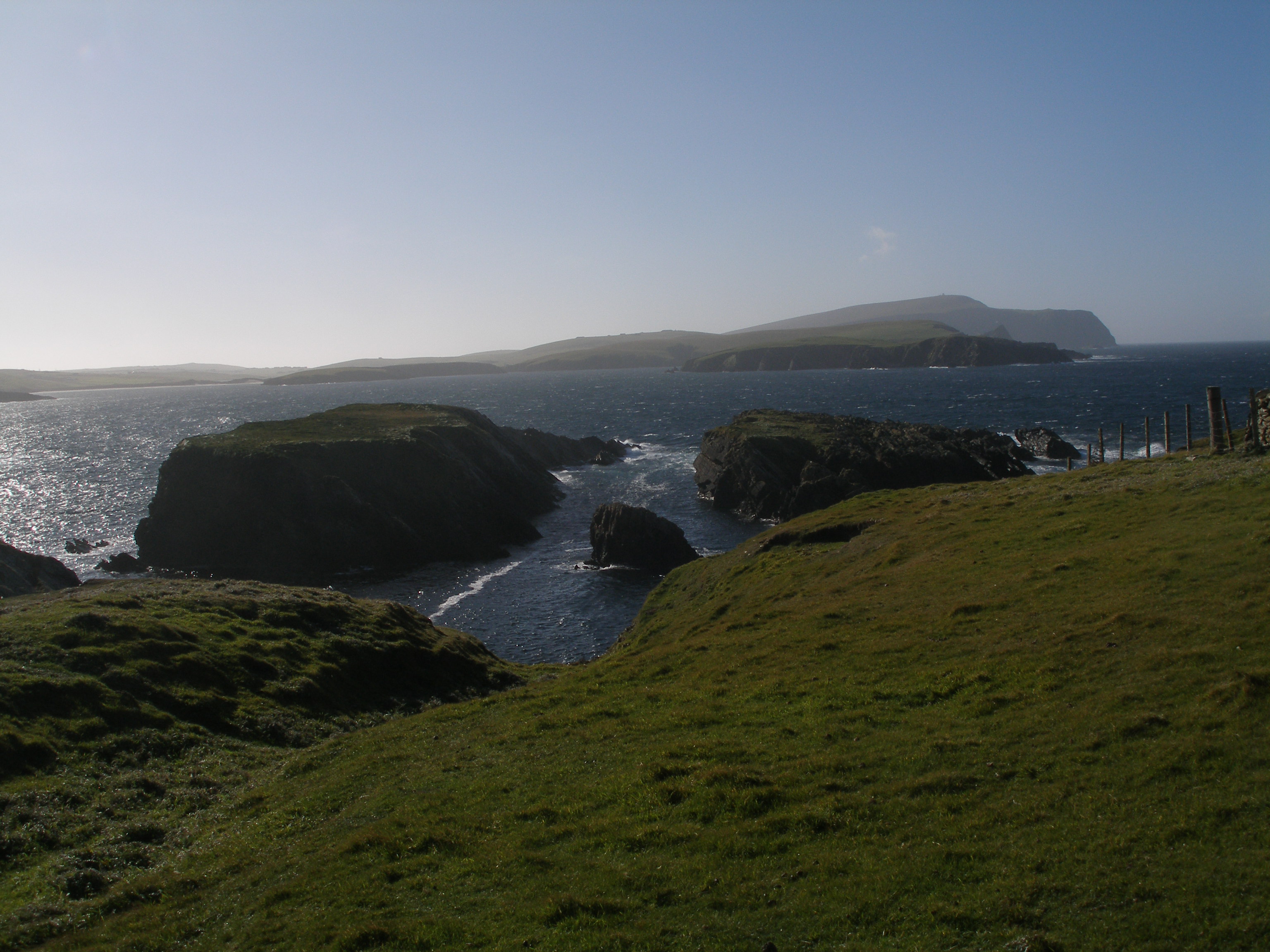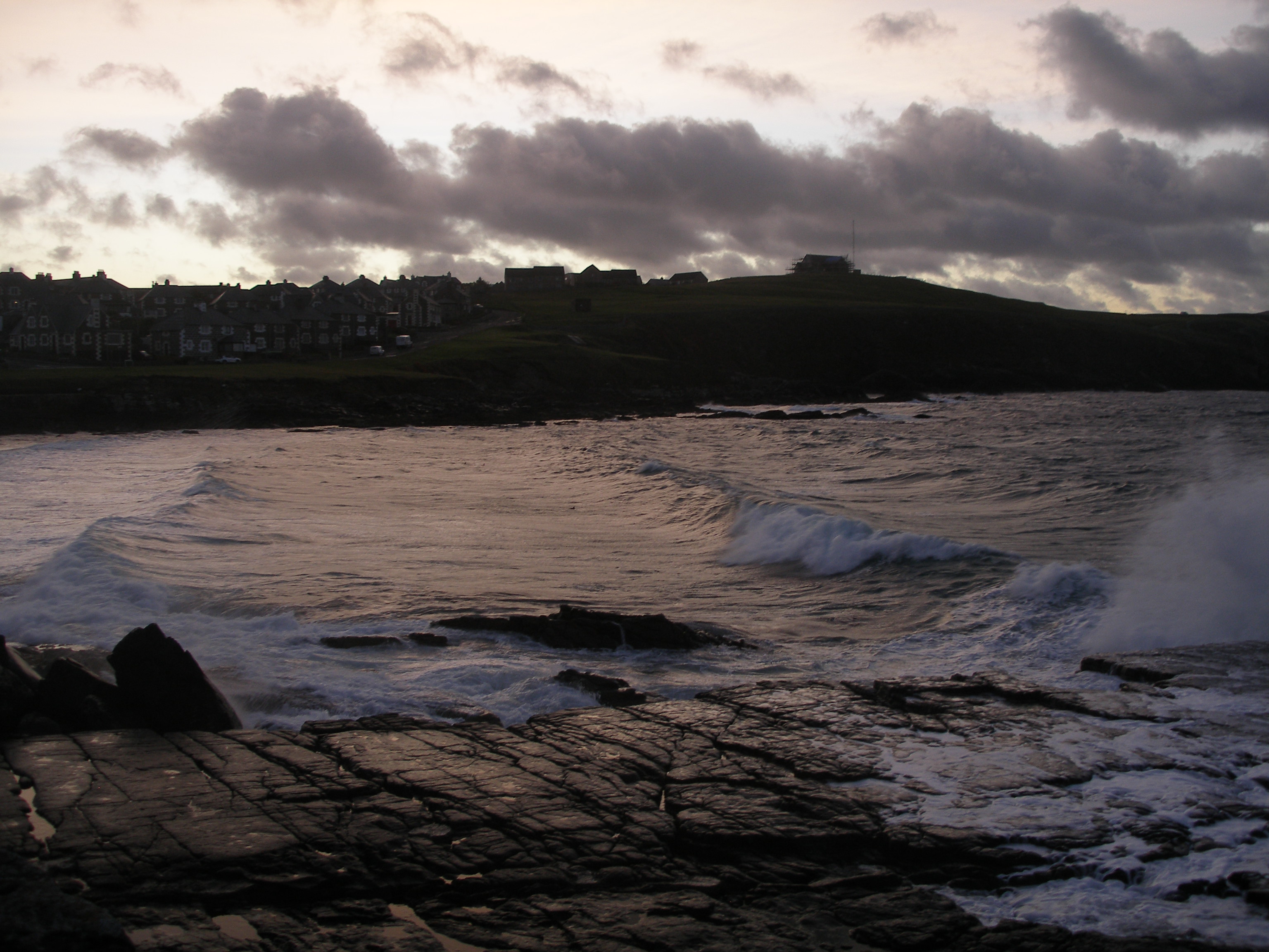 Our final afternoon’s hike took us from the south west end of the old capital across Meal Beach and along the headland, looping back to the harbor. Pointing the minibus in the direction of our hotel, John shared some of his early life growing up in Unst and how the oil riches, tourism, the wind farms – and the forthcoming space rocket launch-site – have brought a basic prosperity to the harsh lives of the Shetlanders. I reflected in the silence that followed, that to blossom in this bleak, remote, beautiful place a person would have to be both resilient and practical, possessing a pioneer’s strength of spirit. Orkney with its softer landscape and richer agricultural land, located much nearer to the mainland of Scotland, seemed to me to offer a gentler prospective lifestyle than Shetland. The shortness of daylight in the mid-winter months presents both a physical and mental challenge to all those living and working on both groups of islands. Only the uniquely resilient who openly embraced being an active human cog in a community wheel, I decided, could hope to flourish.