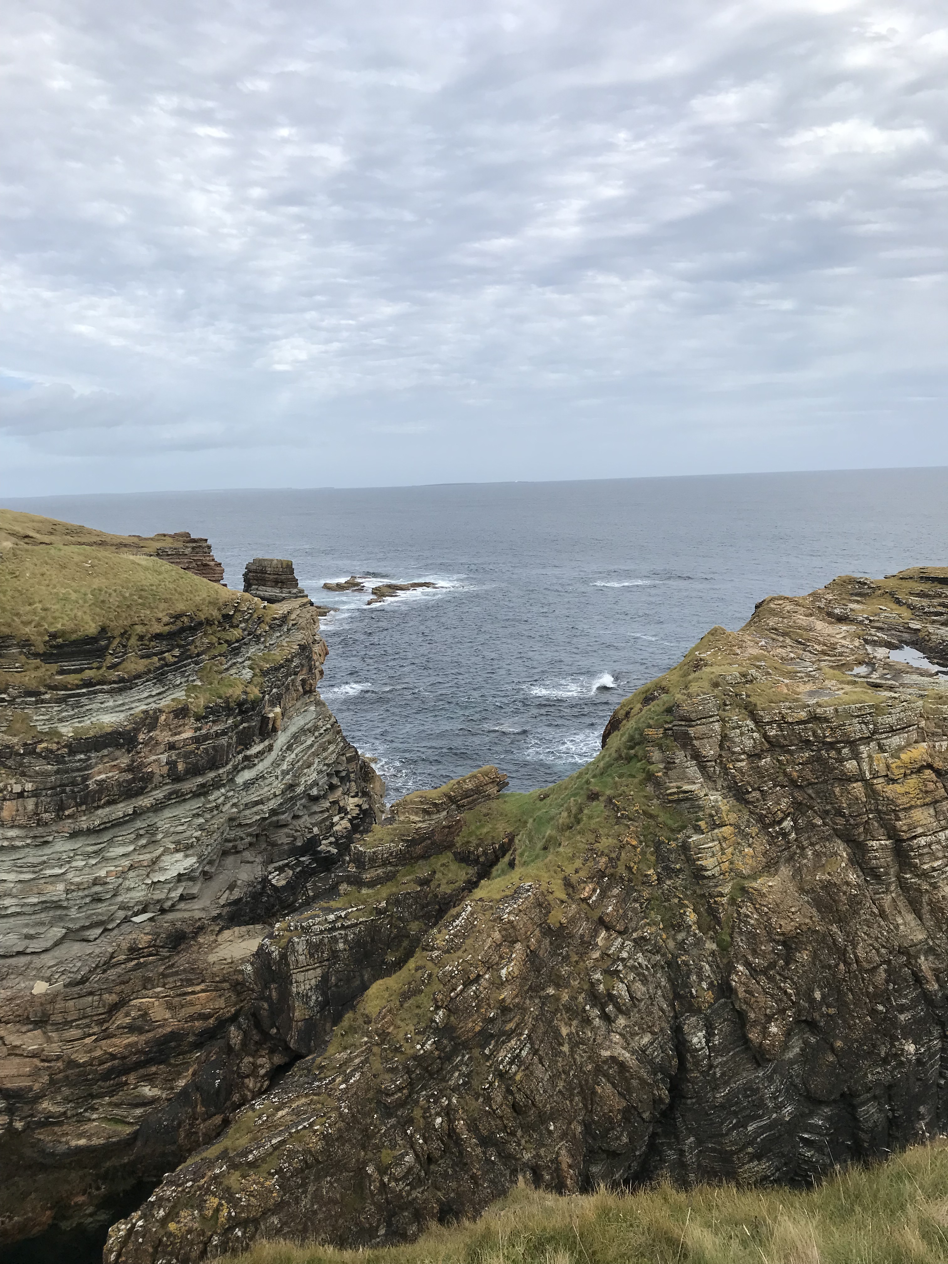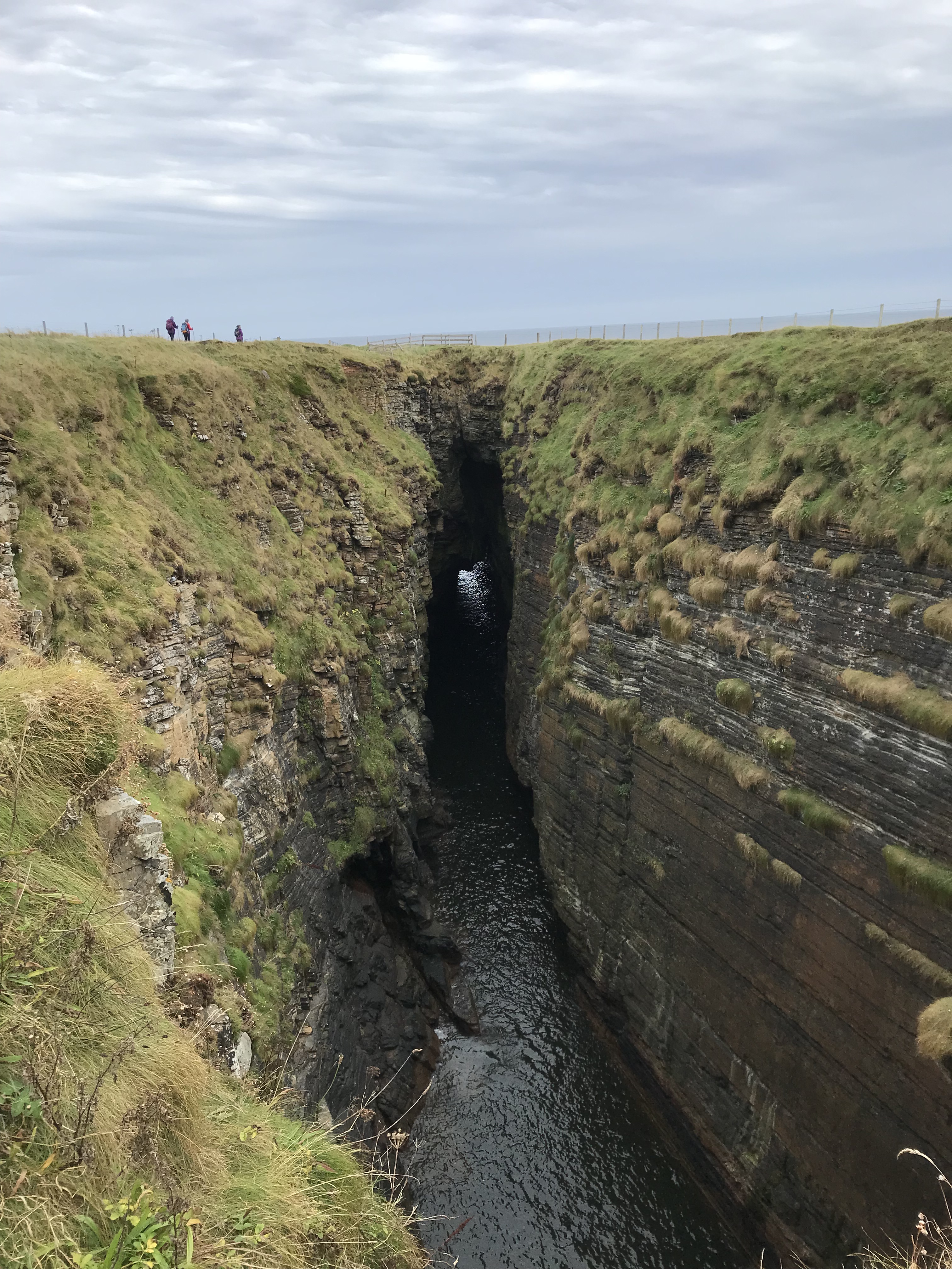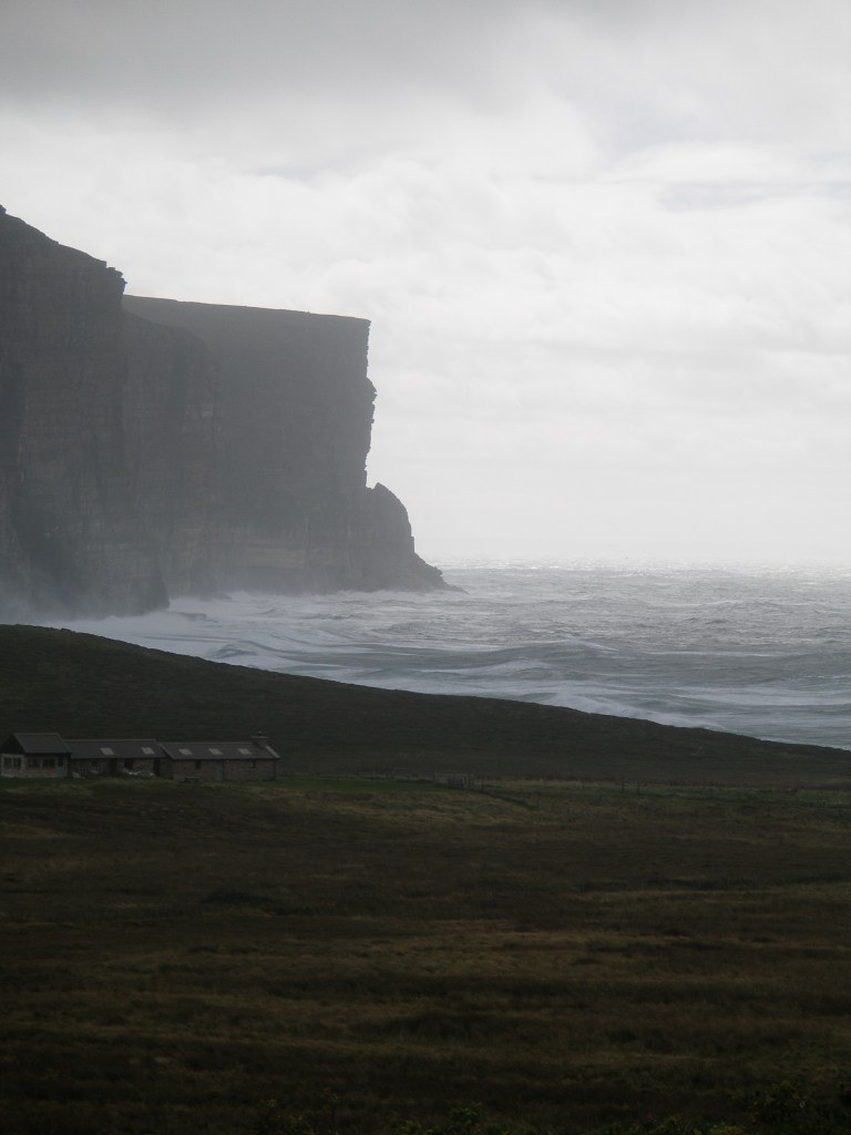 Wind gusts had joined the rain by the time we climbed aboard the ferry to the Isle of Hoy the next day. Huge swells built as we hiked from Longhope to Rackwick to see the Dwarfie Stone Chambered Cairn. Halfway along the headland path towards the solitary stack of the Old Man of Hoy, our group leader aborted the hike due to the ultra-high, inshore winds buffeting our every step. We about-turned and headed back into Rackwick, visiting the Cra’Nest Heritage Museum and Hoy Old Parish Church as we returned to the jetty at Longhope.