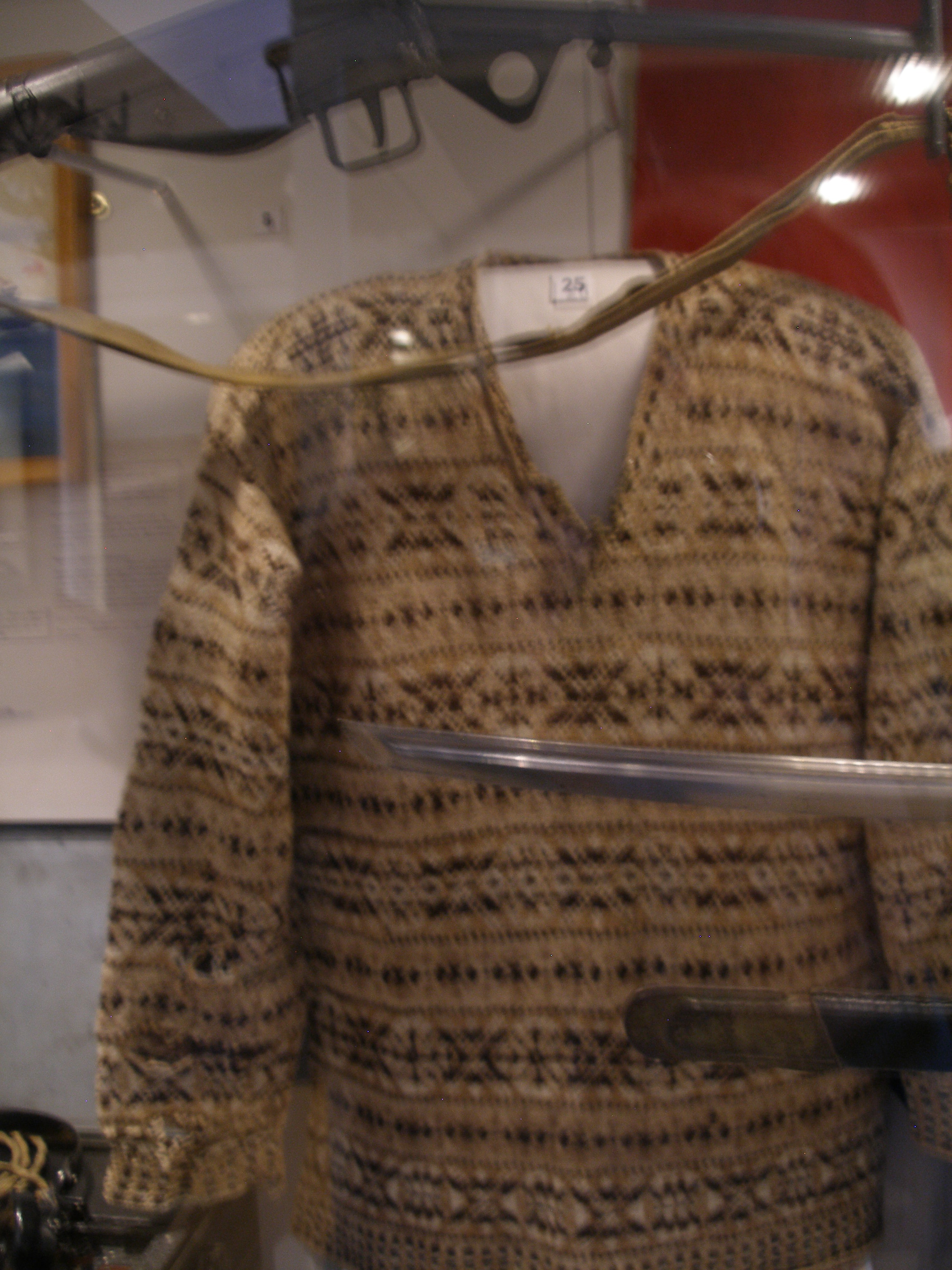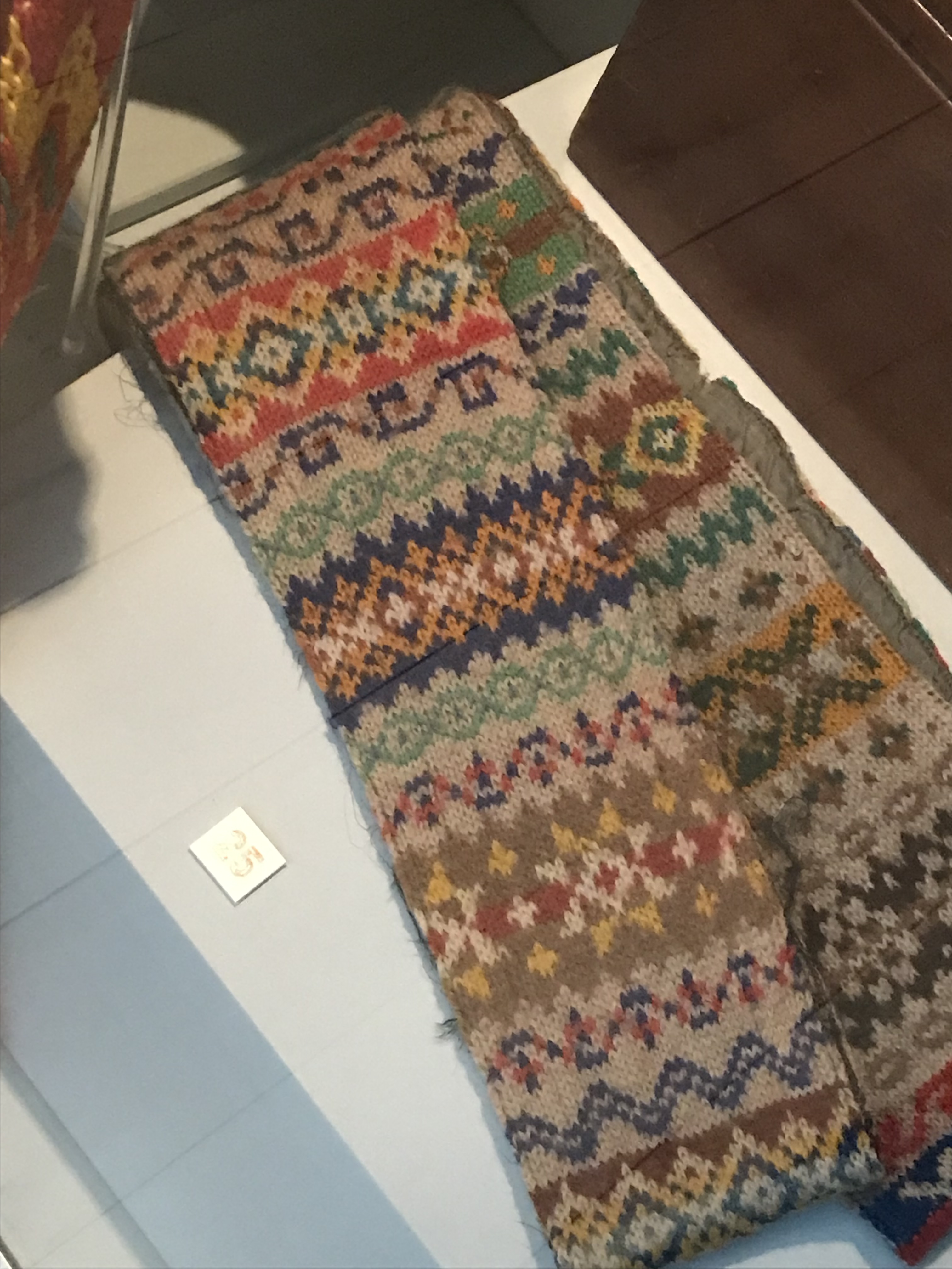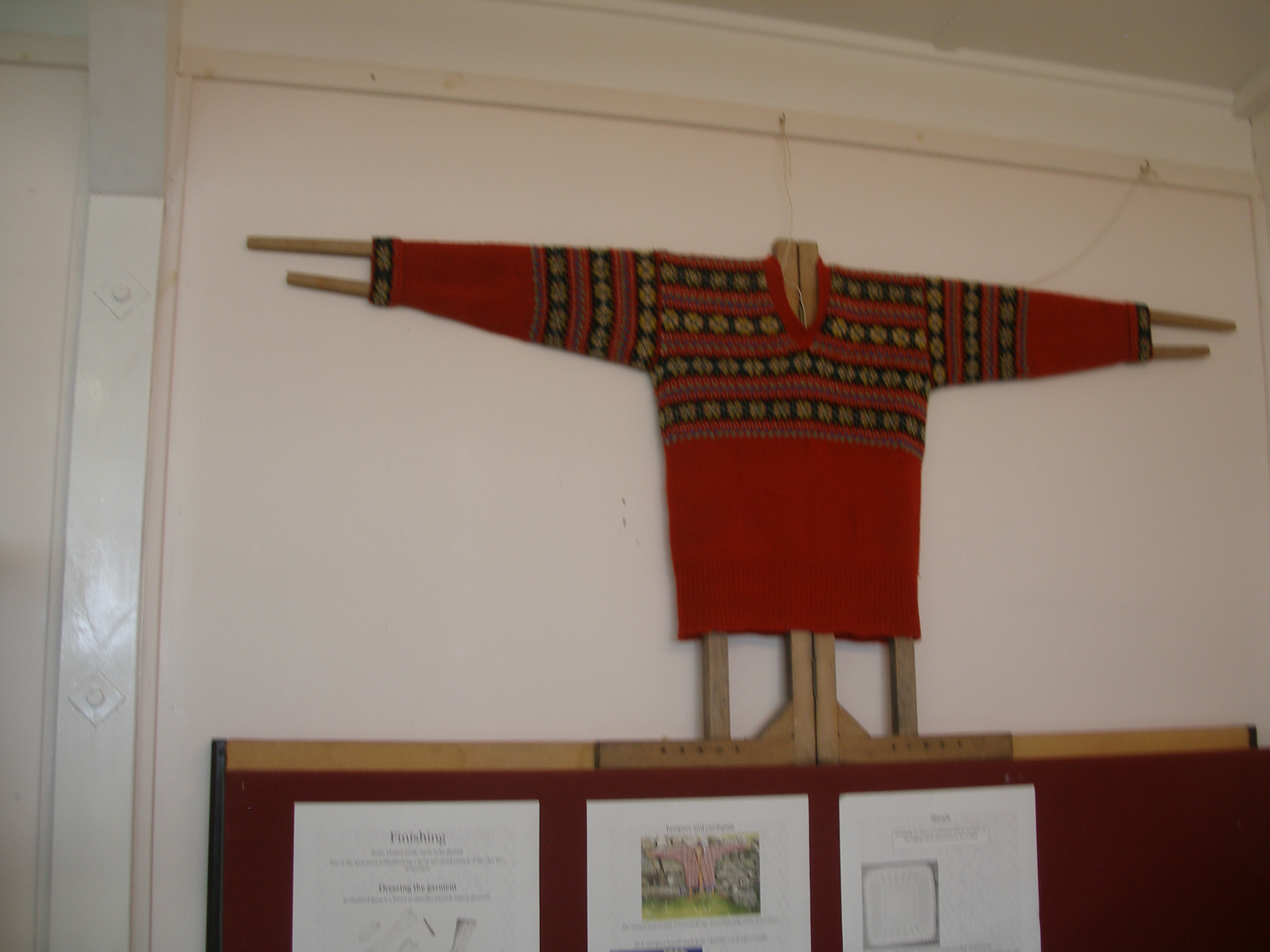 Having walked the circumference of the island, we re-joined John and the minibus to drive into Scalloway, once capital of Shetland. Here we ambled past the ruins of a striking castle in mid repair before immersing ourselves in more history in the Scalloway Museum with its final chance for me to admire, absorb and photograph the textile history displays.