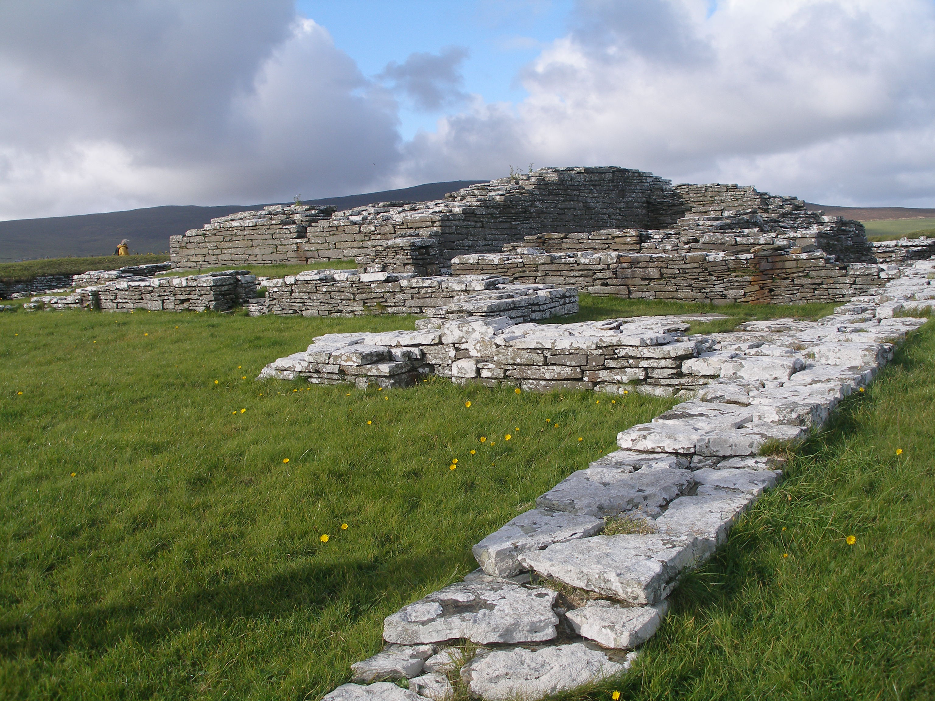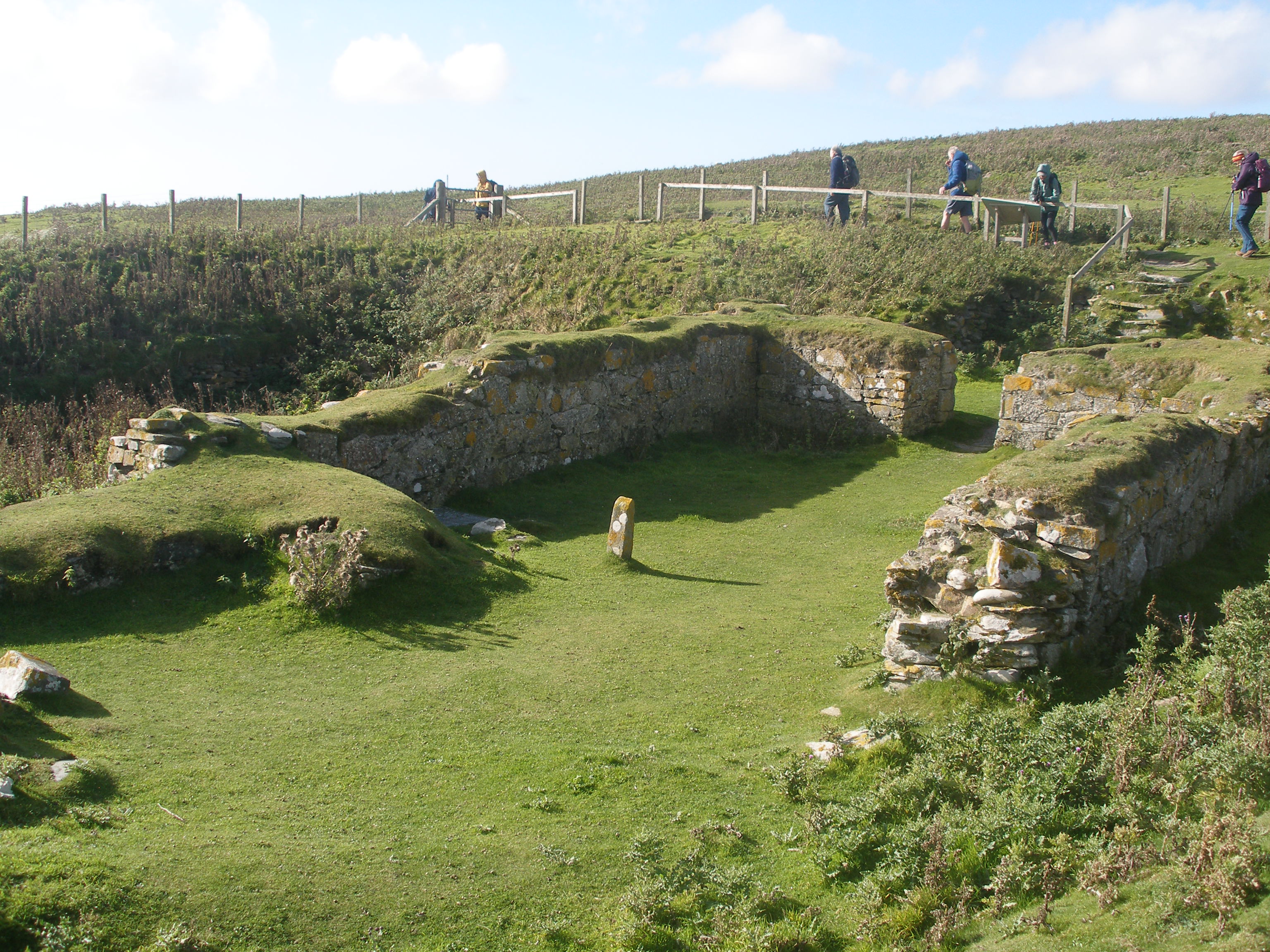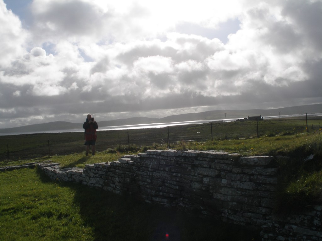 Damp ferry journeys were undertaken to the islands of Wyre to explore the oldest defence tower in Scotland, Viking Earl’s Cubbie Roos, and of Rousay, to climb down into the claustrophobic confines of the Taversoe Tuick underground cairn, followed by hiking the ridge of Knichen Hill, pausing only to help a local lad round up some errant sheep as we descended.