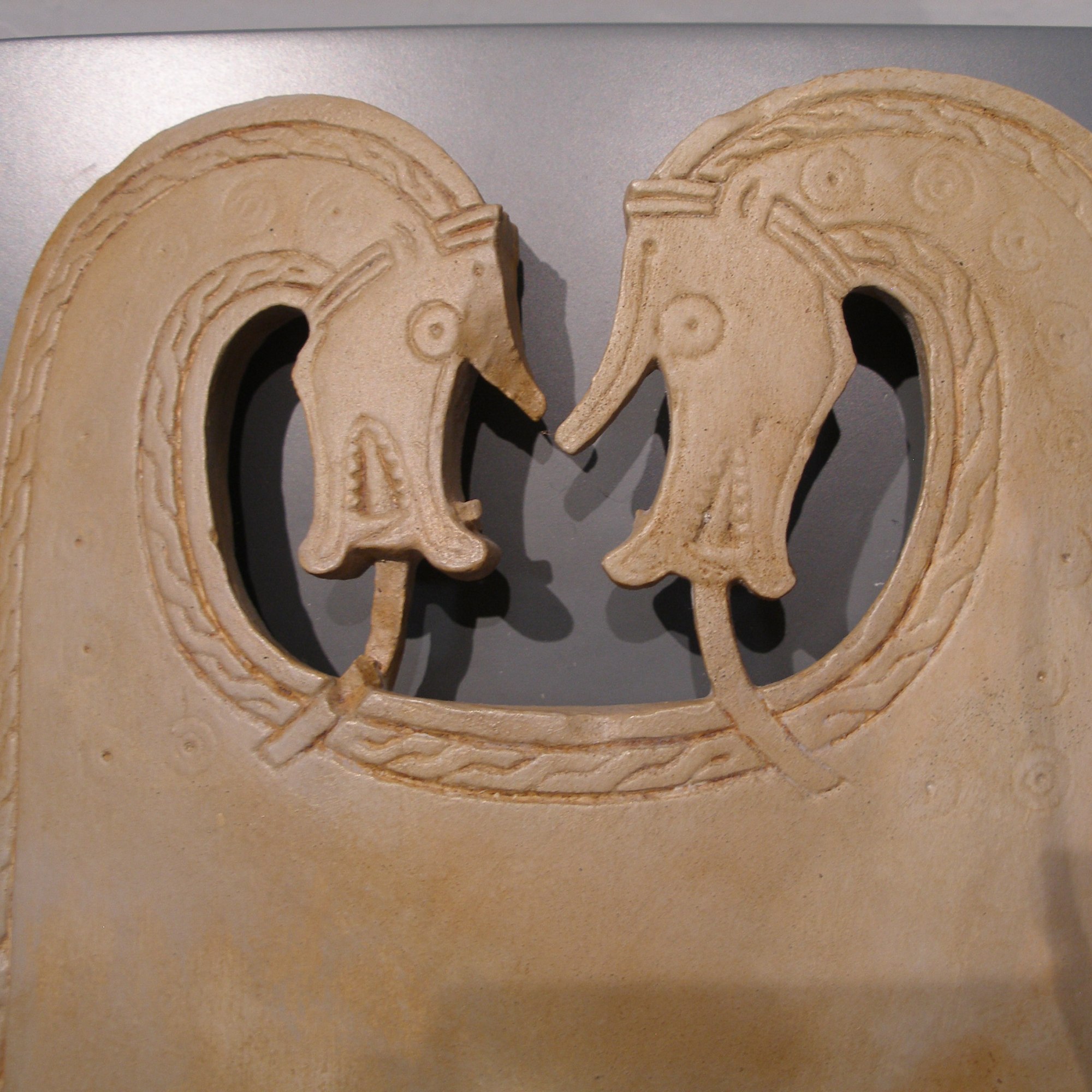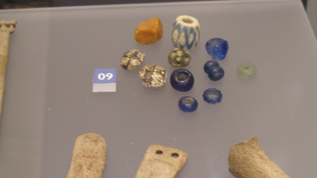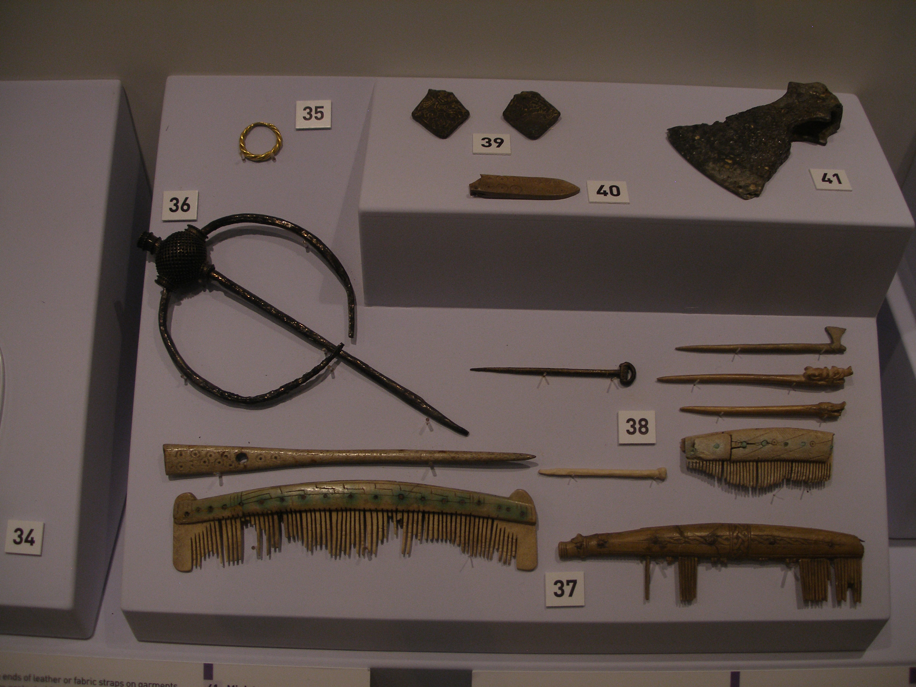Gazing through thick glass casements at the familiar gold brooches, shards of pottery incised with runes, bone and ceramic bead necklaces, glistening serpentine axe heads, tiny amber bead bracelets, curiously carved stone roulades and carved drop spindle heads … it was as if I was being greeted by old friends.
