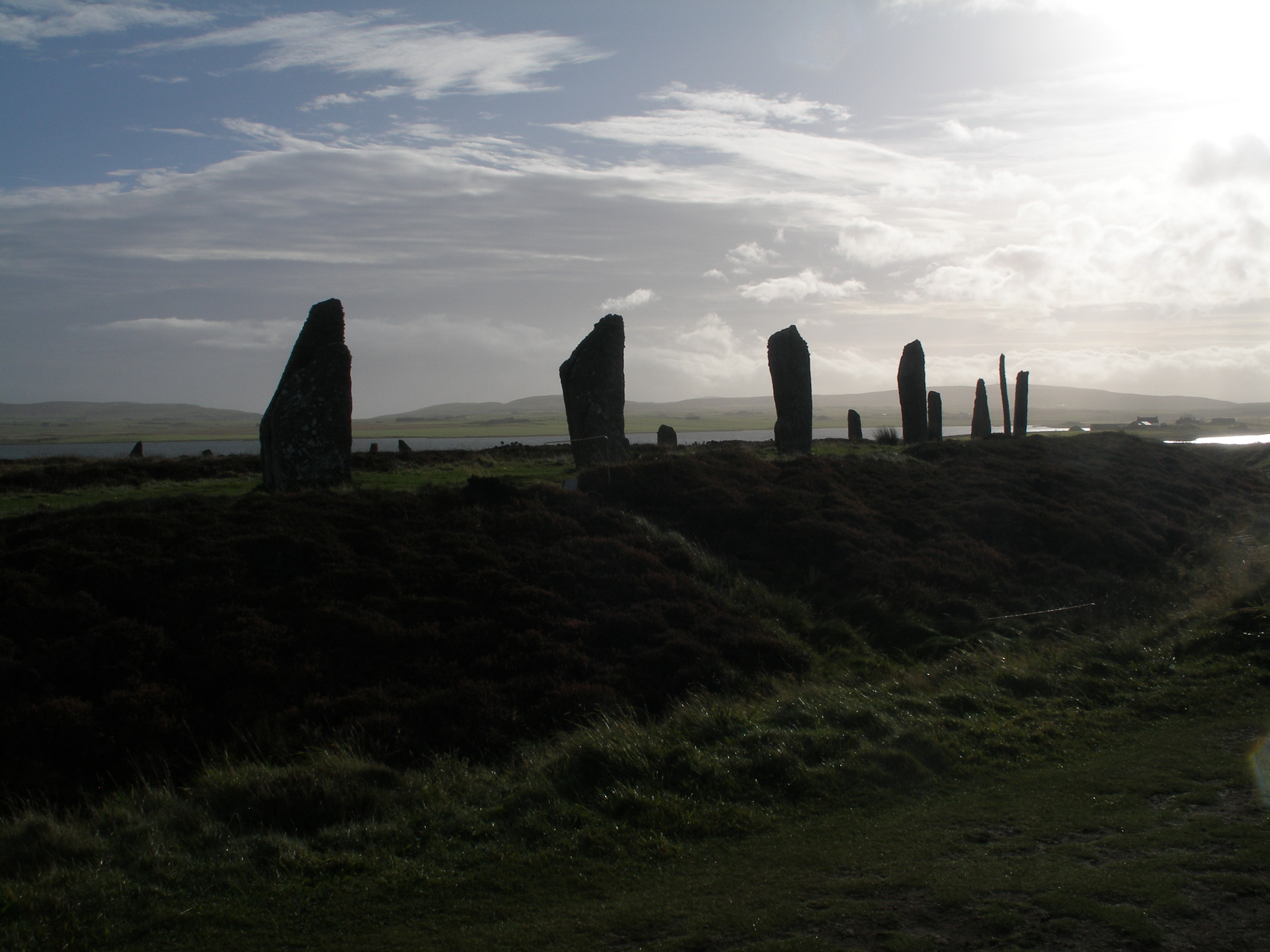 The ancient gods must have learned of our disappointment: the next day we woke to clear skies for our tours of the iconic stone circle Ring of Brodgar where thirty six of sixty original standing stones are still erect, and the Standing Stones of Stenness where six of the original twelve remain. Their majesty somewhat over-shadowed the impact of the visit to the Neolithic Barnhouse Settlement where a group of eight multi-roomed houses have been excavated, together with the Unstan Chambered Tomb and its unique Unstan ware pottery.