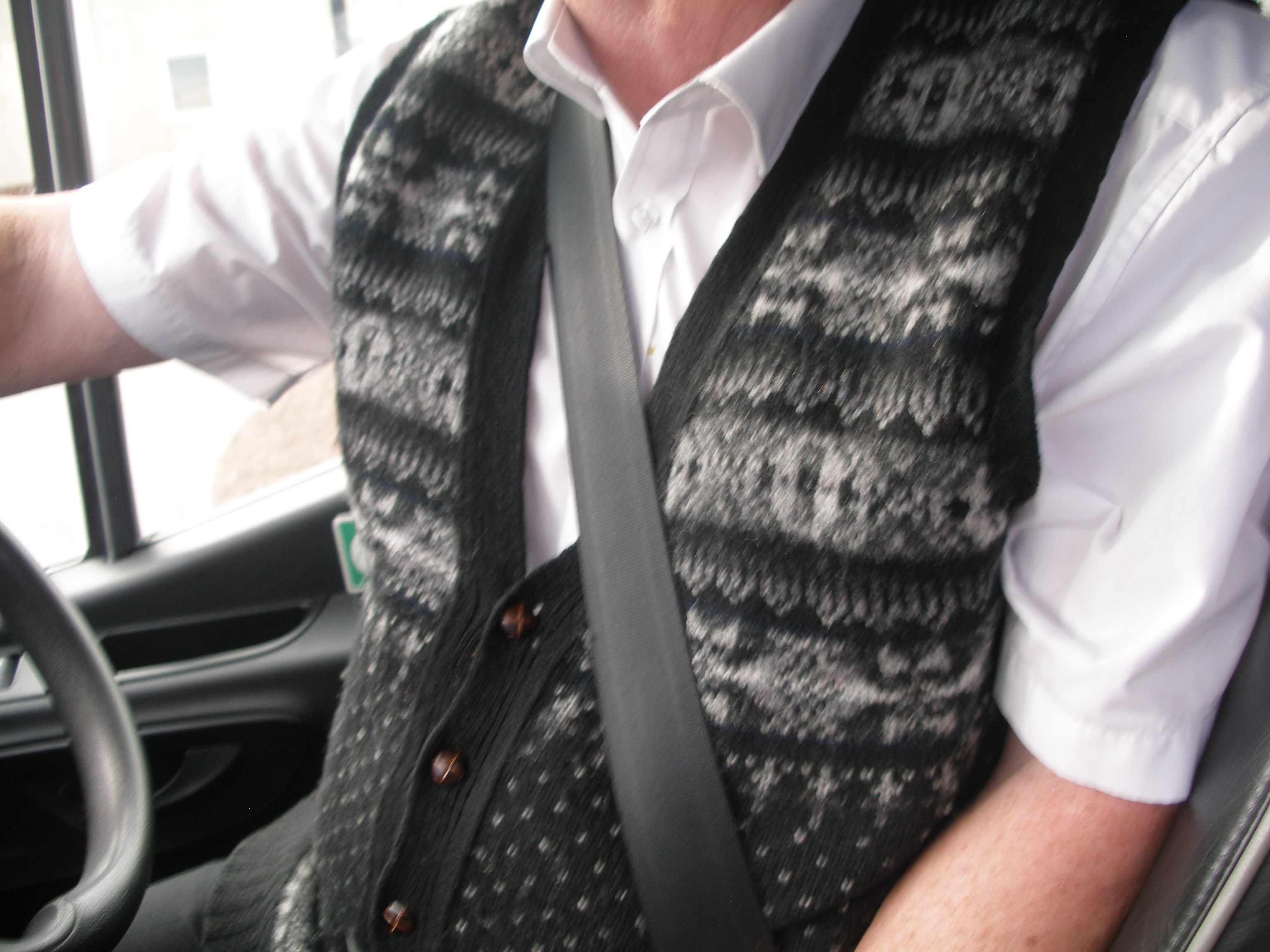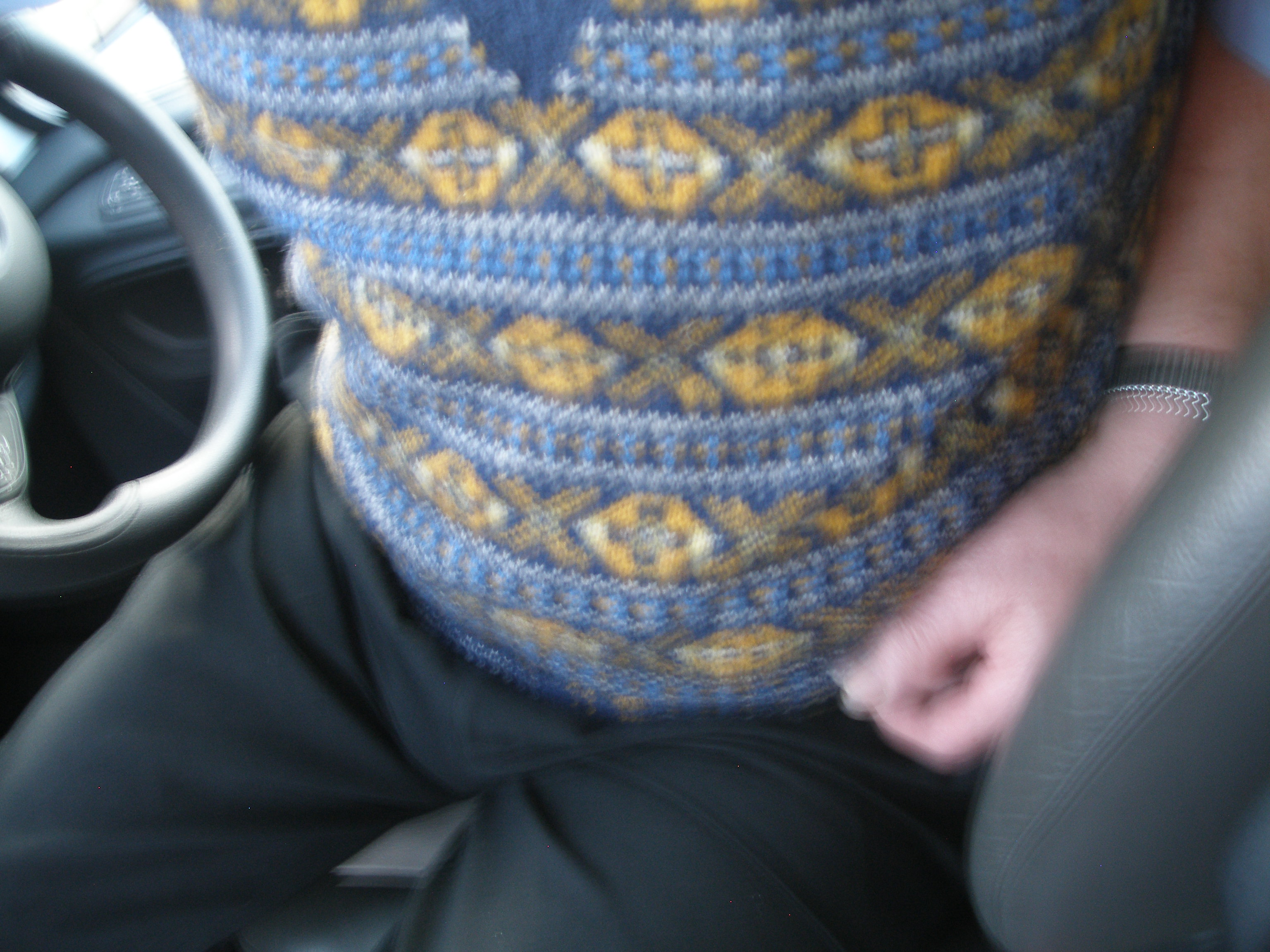 John’s wife – the creator of all those beautiful waistcoats – accompanied us on the mini bus journey next morning to the airport: they were picking up a group of twelve American ladies who had travelled to Shetland to take part in the annual Knitters’ Week. I envied those visitors and fervently wished I too was staying on in Shetland and had enrolled to join the masterclasses, demonstrations and lectures. Perhaps a return visit would be called for … in summer time with the chance to catch a ferry from Lerwick to Fair Isle …
